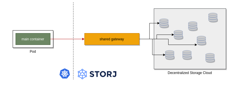 Note: http://localhost:7777 is the address of the single-tenant Storj gateway which is running in the same pod.