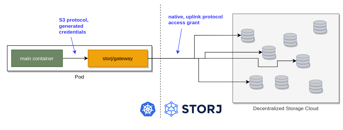Sidecar pattern is an easy way to access our data from Storj Decentralized Cloud Storage using the power of the native protocol, even if our application is compatible only with the S3 Rest API.