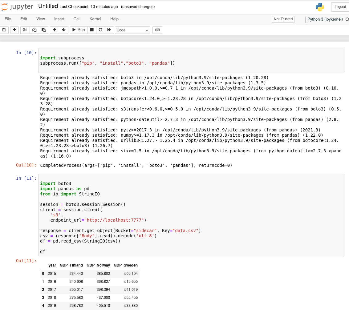 Let’s start with a simple example: we will create a Jupyter notebook which reads data from a Storj bucket for following data science calculations.